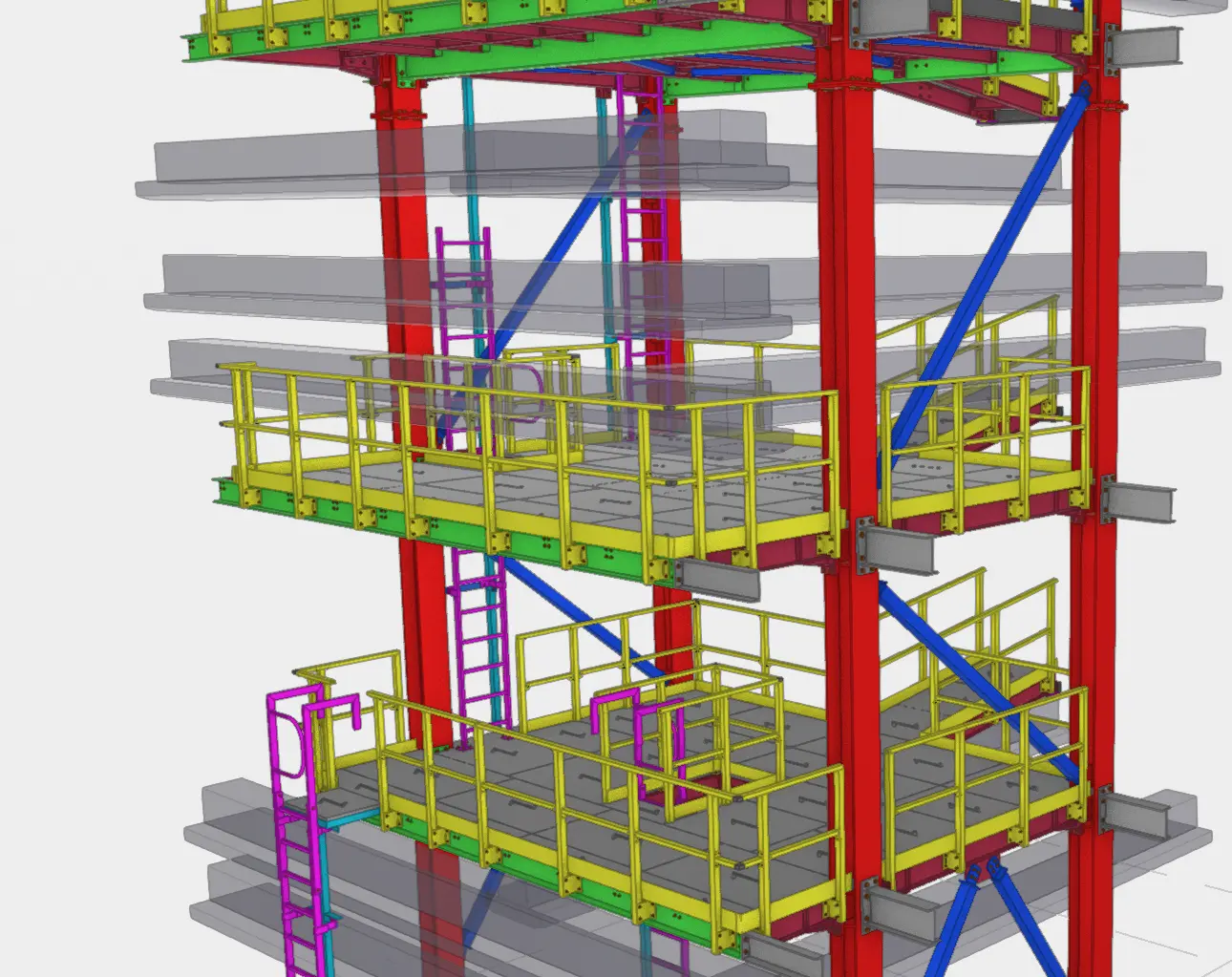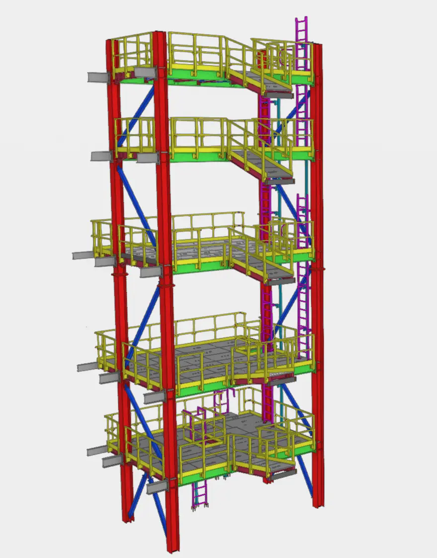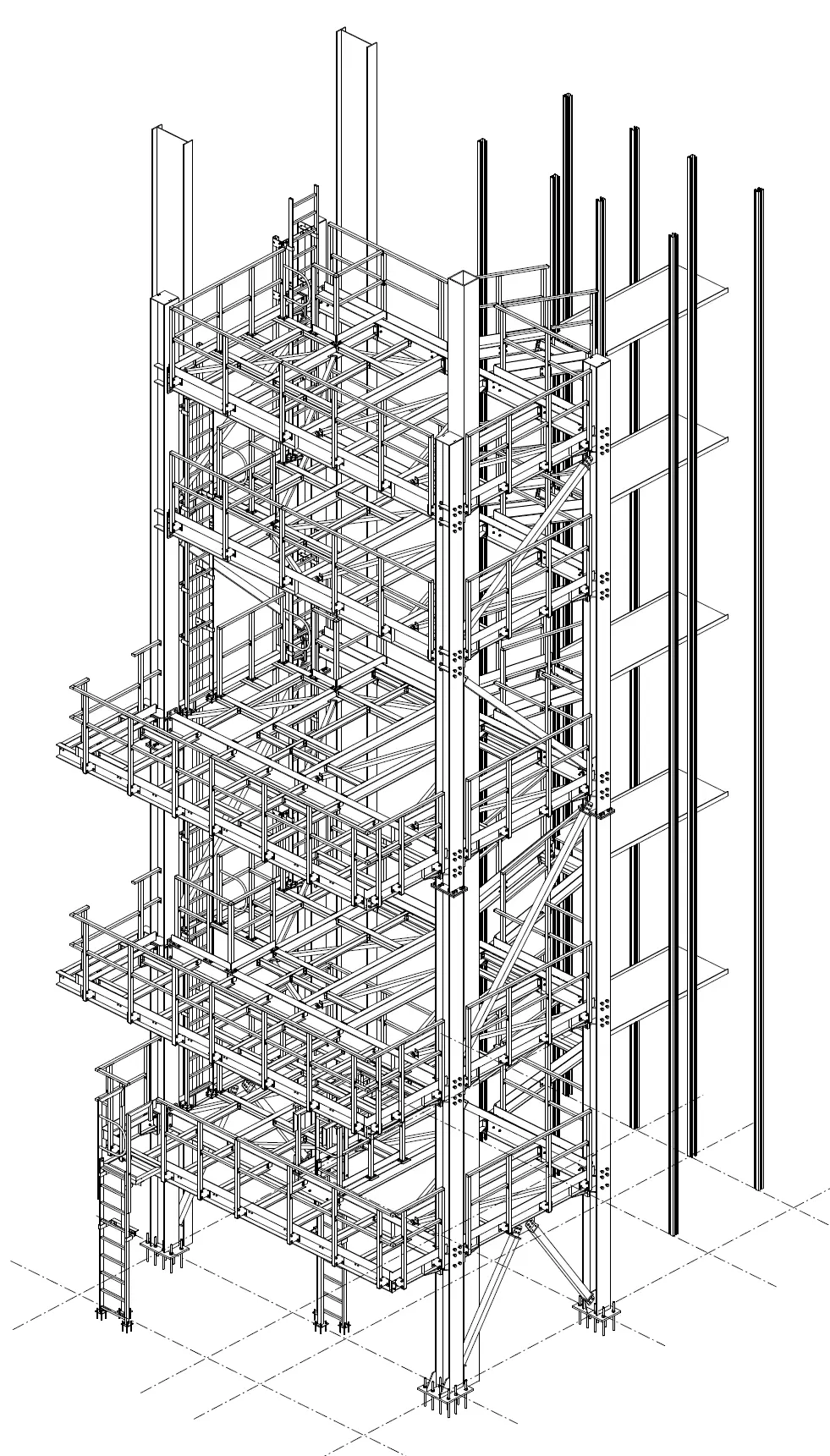 Předmětem řešení byla samostatně stojící věž pro údržbu dopravníků.