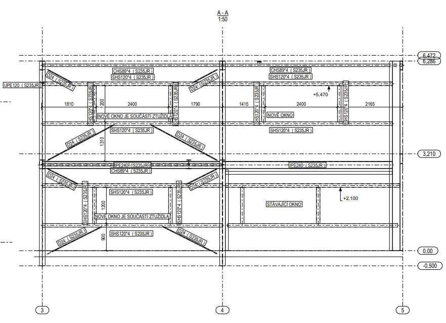 Změna dokončené stavby. Účelem byla vestavba 2.NP ve skladu. Byly vytvořeny tři nové místnosti, které slouží jako dílna a jako kancelář/laboratoř k zkoušení vzorků