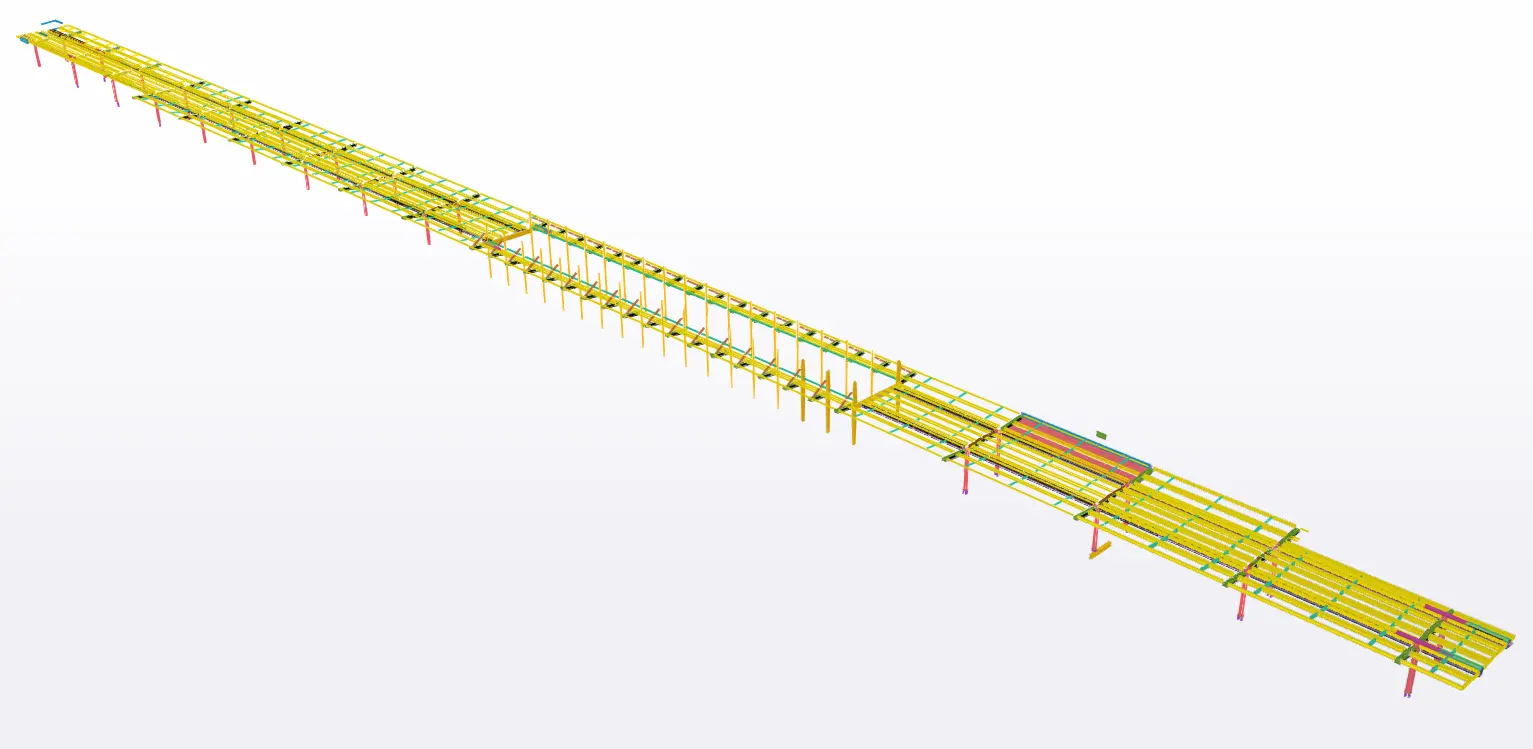 230 m dlouhá a 10,5 m široká ocelová konstrukce. To je zastřešení nástupiště v německém Hannoveru, na které naše kancelář zpracovala výrobní dokumentace včetně opláštění. Nová střecha bezprostředně navazuje na stávající budovu s eskalátory.