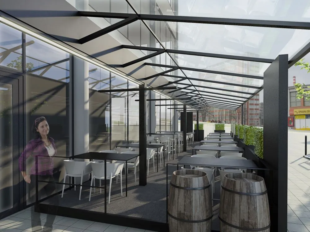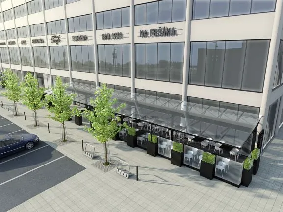 Projekt předzahrádek k ikonické budově Prioru ve Zlíně. Dokumentace zpracována v souladu s požadavky architekta. Přístřešky v kombinaci ocel-sklo. Součástí dokumentace byly rovněž designové květináče.