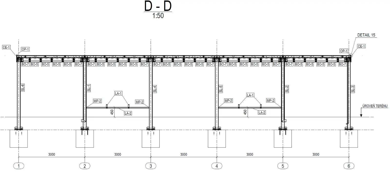 Jednoduchý 15 m dlouhý přístřešek stojící na vlakové zastávce v Rosicích nad Labem byl vyroben a namontován dle výrobní dokumentace z naší kanceláře. Předlohou byl designový návrh a požadavky na materiálové i barevné řešení.