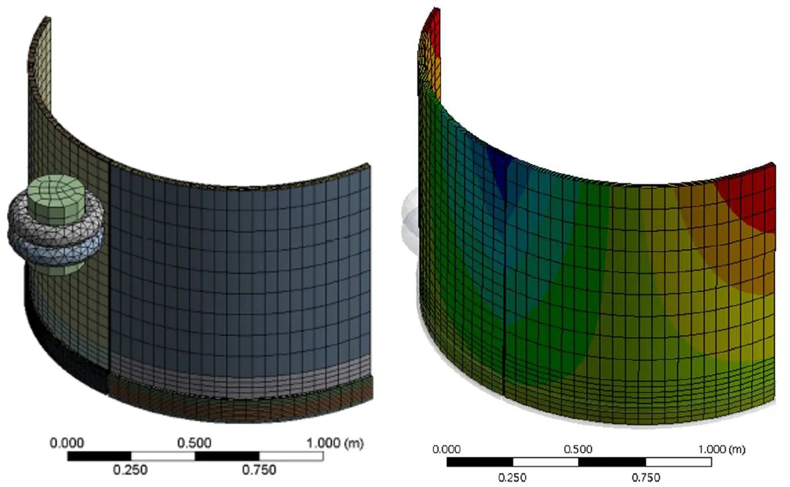 Pevnostní výpočty bezpečnostních skel. Tato skla se skládají z více vrstev různých transparentních materiálů. Skla se analyzují staticky deskostěnovými modely metodou konečných prvků.