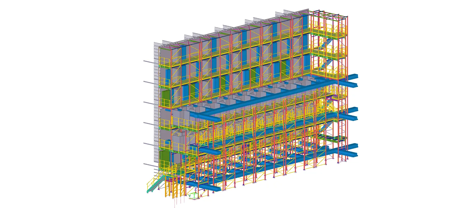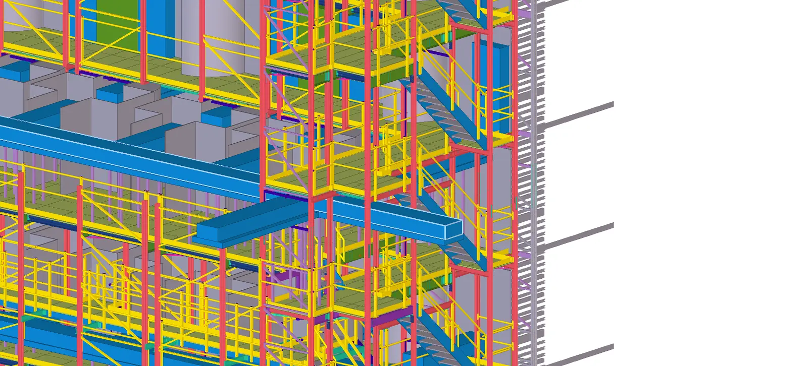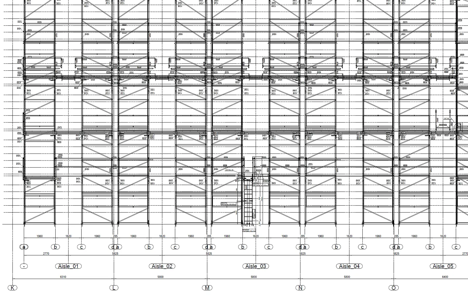 Řešení přístupových schodišť a lávek pro údržbu regálového systému a dopravníků.